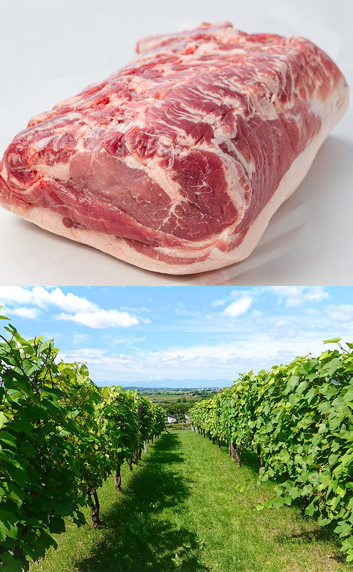 こうして生まれた贅沢なブランド豚「北島ワインポーク」の肉質は、きめ細やかでしっとりと柔らかい赤身と、サラリとして甘い脂身が魅力。驚くべきは、旨み成分の一つであるグルタミン酸が一般的な豚肉の2倍相当あるということだ。豚肉ならではの旨みを持ちながら後味はすっきりとキレが良く、健康な豚肉だという安心感とあいまって、どこか清々しささえ感じる味わいとなっている。